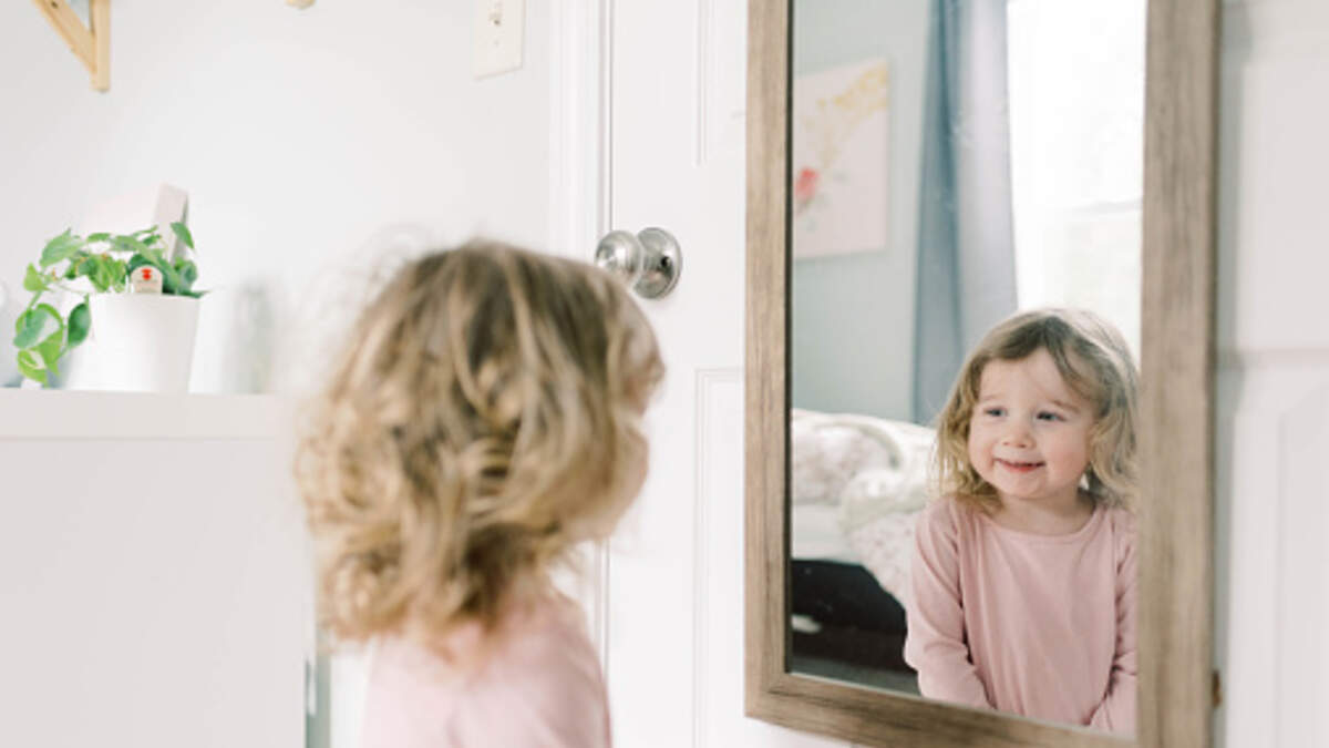 This little one is so awesome. She could not stop interacting with herself through the mirror. From making funny faces to playing peek-a-boo she had a great time with her reflection.