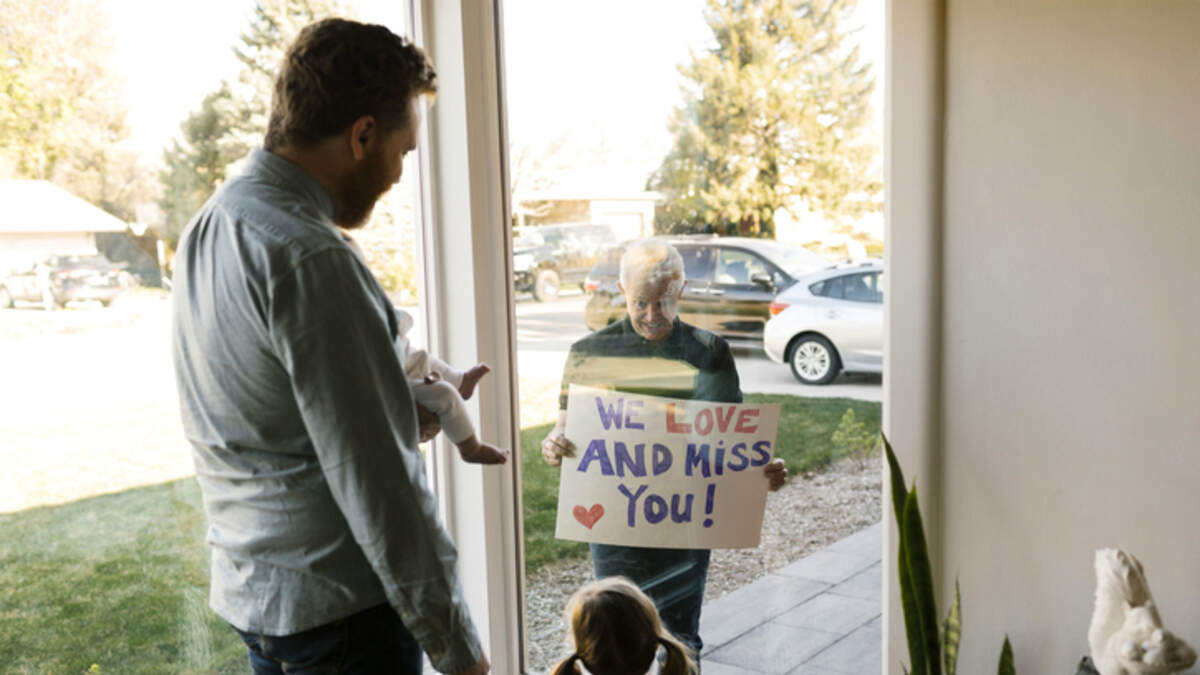 Grandparents visit their grandson's house while he is on vacation and say hello to him through his doorbell camera.