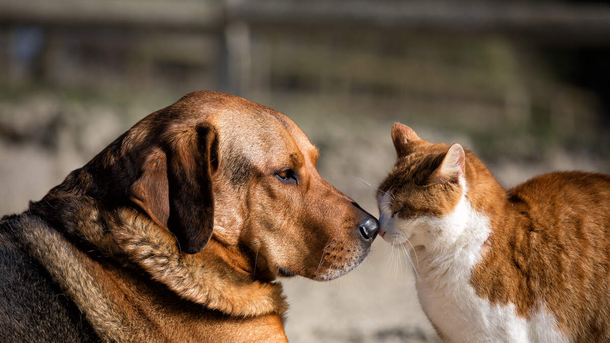 A dog chases a cat onto the sofa until the clever cat hides in the corner cushion.