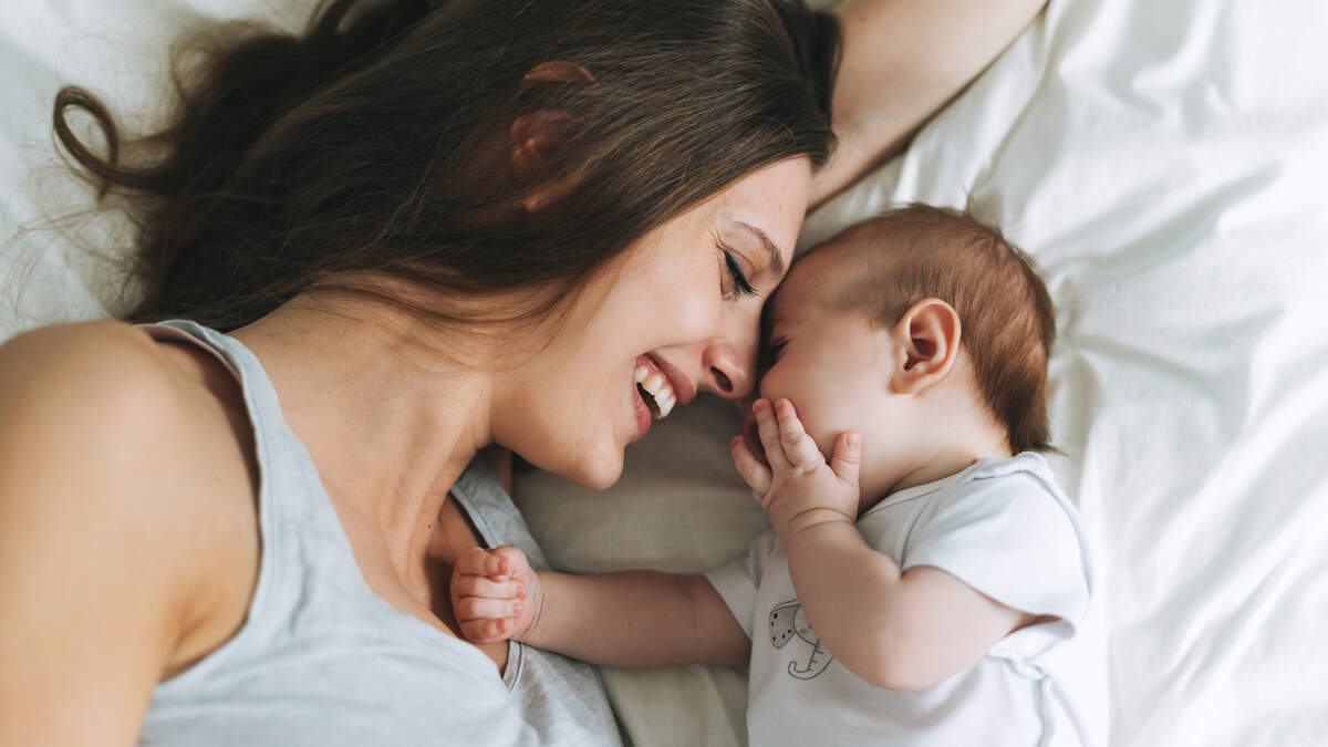 A three-month-old baby listens to his mom's bad jokes before going to bed as alternative bedtime stories.